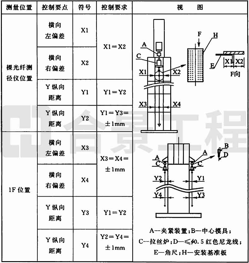 2 測(cè)徑儀中心與拉絲爐中心垂線的允許偏差應(yīng)為±0.1mm。